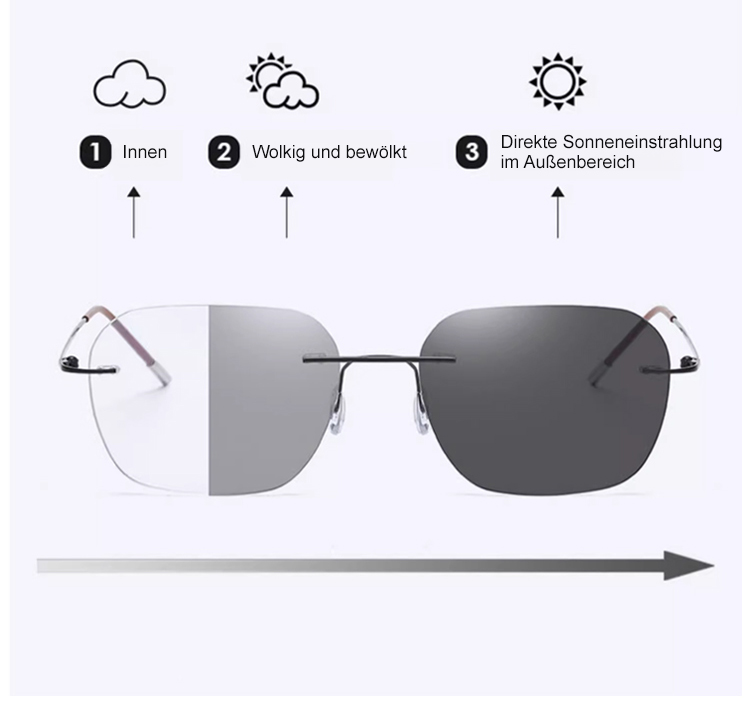 Photochrome, rahmenlose Gleitsichtbrille ohne Rand【Unisex】