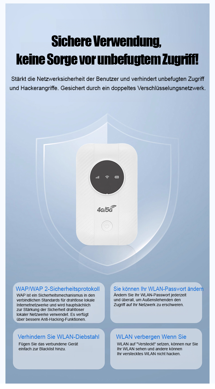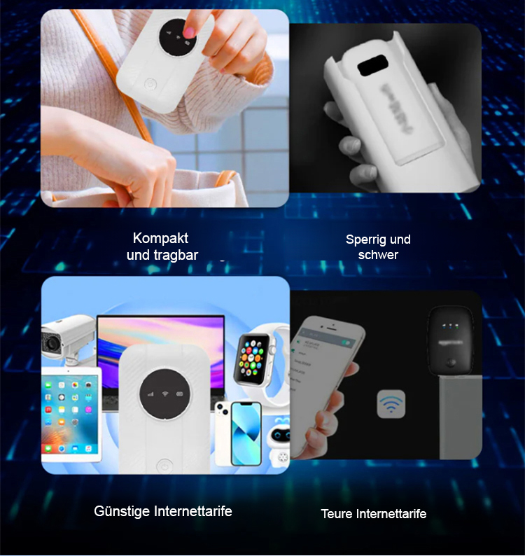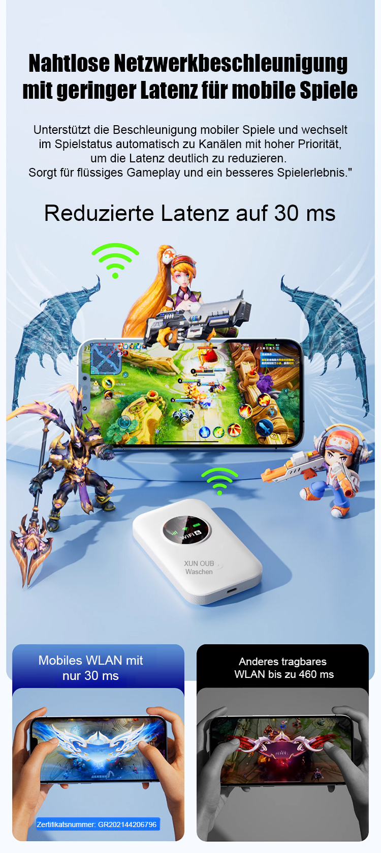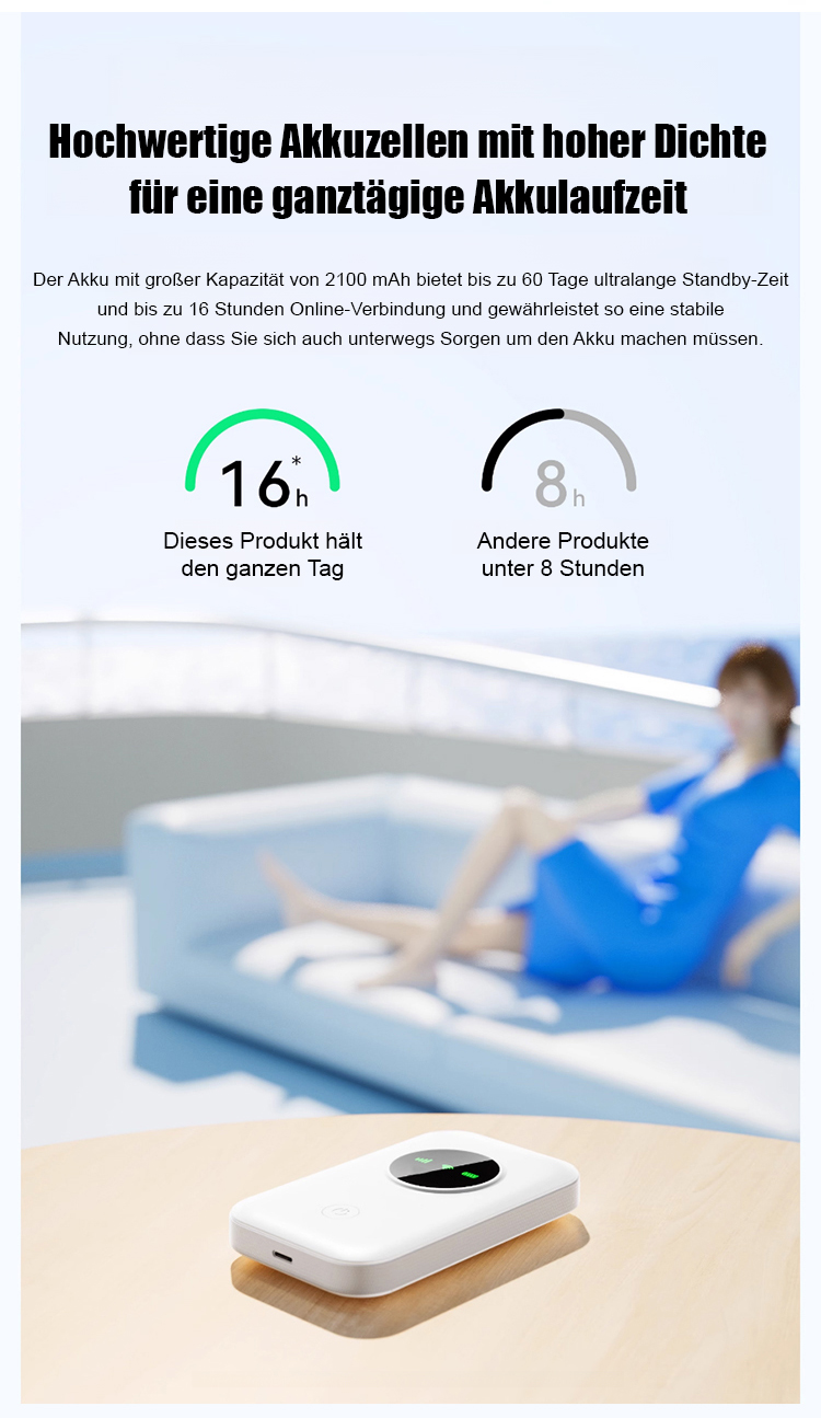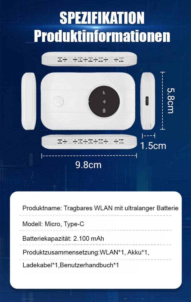 🌐 WLAN-Wundergerät für alle Regionen! Keine SIM-Karte, kein Vertrag, keine Kabel - einfach auspacken und online! ✨Downloads sind rasend schnell - Zwei-Stunden-Film in 10 Sekunden! Stabile Hochgeschwindigkeitsverbindung ohne Stocken. 🚀