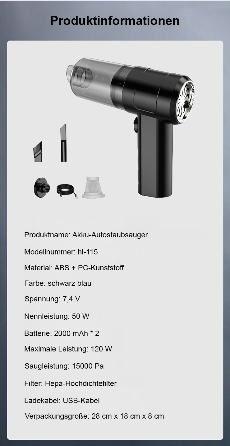 ✅Kabelloser Staubsauger für Autos ✅Maximale Saugleistung 15000 Pa ✅Kabellos, bequem und schnell zu bedienen, entfernt Staub und Schmutz aus Spalten 🚗 Starke Saugkraft: entfernt effizient Staub, feine Partikel und Tierhaare aus dem Auto und lässt den Innenraum frisch und neu aussehen