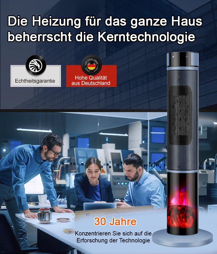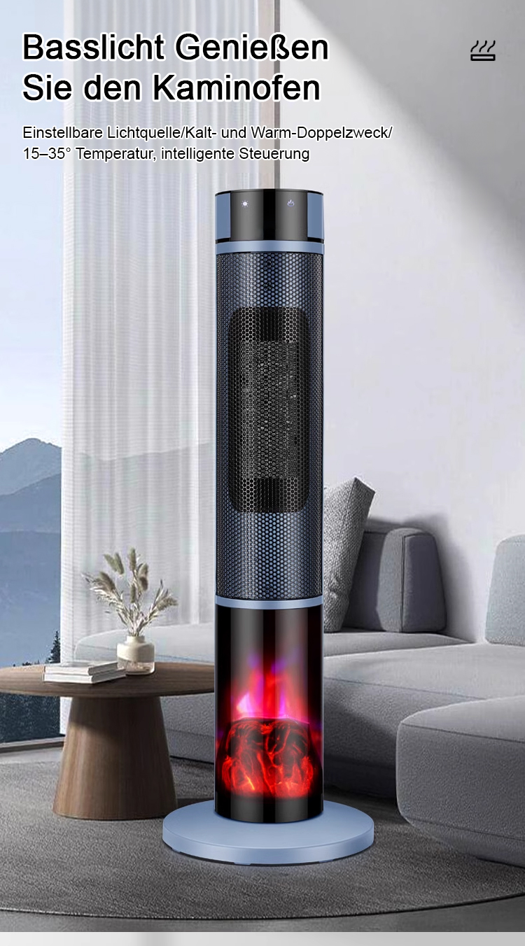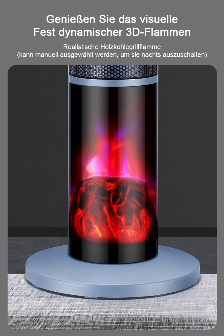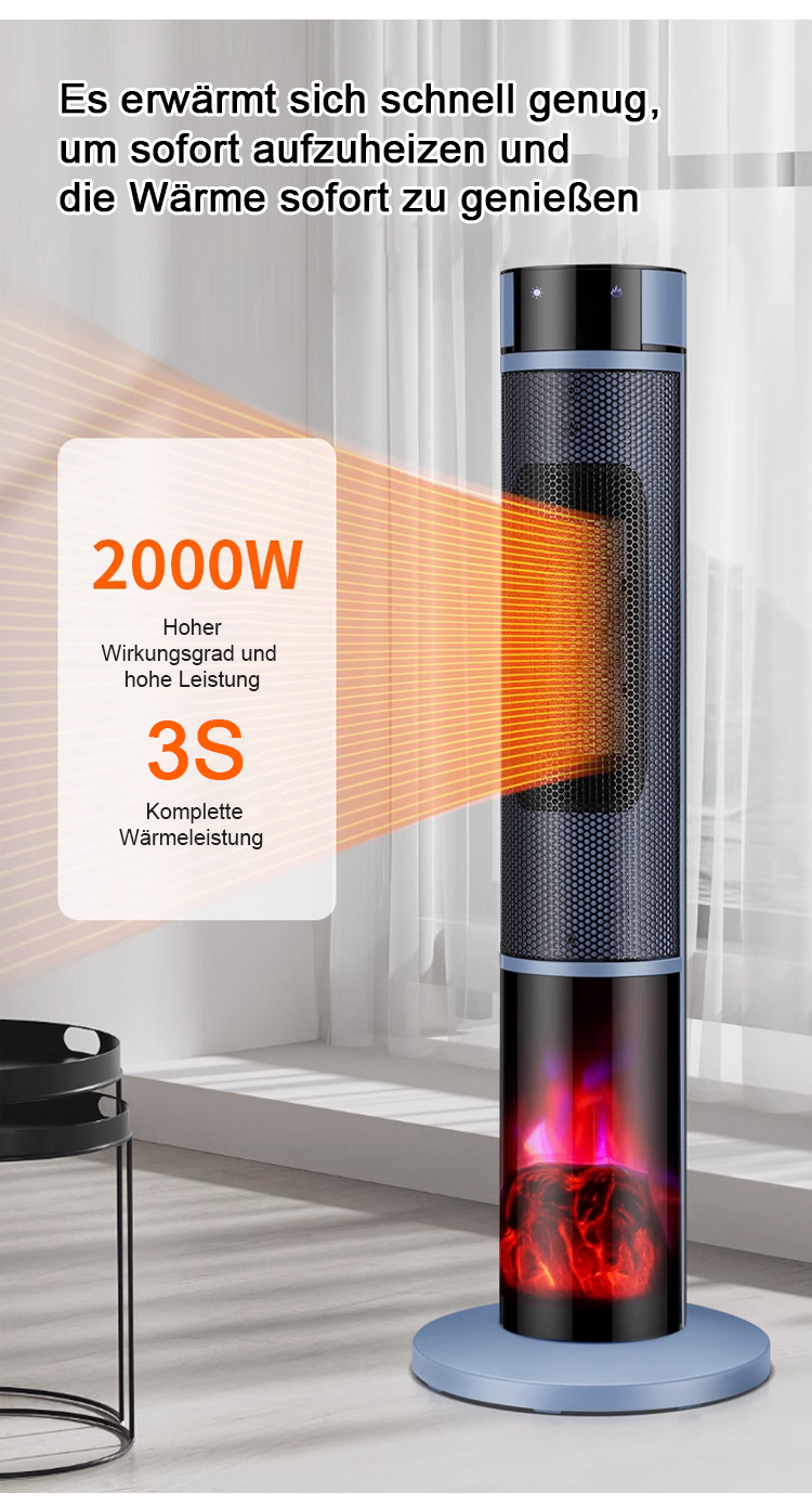 [1 Sekunde schnelles Aufheizen] Dreistufig einstellbare, großflächige 3D-Flammen-Raumheizung