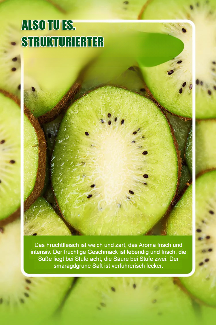 Eine hochwertige Sorte aus Neuseeland, die mindestens zweimal im Jahr Früchte trägt, in wärmeren Gegenden sogar dreimal. Fleischig, saftig, süß und zart, muss nicht geschält werden, perfekt für den Anbau zu Hause. 👍