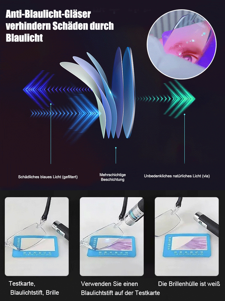 Diamantgeschliffener Rand Randlose Anti-Blaulicht-Farbwechselbrille
