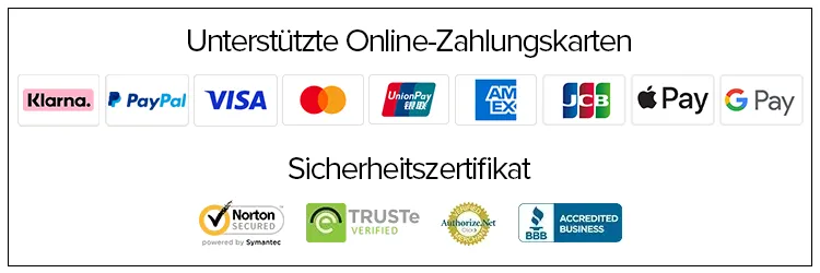 Sind meine persönlichen Daten sicher?Ja, wir legen großen Wert auf die Sicherheit Ihrer persönlichen Daten. Wir verwenden fortschrittliche Sicherheitsmaßnahmen, um Ihre persönlichen Daten zu schützen und sicherzustellen, dass sie nicht unbefugt eingesehen, verwendet oder offengelegt werden.Wie wird meine Privatsphäre geschützt?Wir halten uns strikt an die geltenden Gesetze und Vorschriften und setzen verschiedene technische und organisatorische Maßnahmen ein, um Ihre Privatsphäre zu schützen. Ihre persönlichen Daten werden nur zur Bearbeitung von Bestellungen und zur Verbesserung unseres Services verwendet und nicht ohne Ihre ausdrückliche Zustimmung oder gesetzliche Verpflichtung an Dritte weitergegeben.Werden Zahlungsinformationen verschlüsselt?Ja, alle Zahlungsinformationen werden während der Übertragung verschlüsselt. Wir verwenden SSL (Secure Socket Layer)-Technologie, um sicherzustellen, dass Ihre Zahlungsinformationen während der Übertragung sicher bleiben und vor unbefugtem Zugriff geschützt sind.